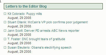 Below is a snapshot of the Daily Camera Letters to the Editor blog. Supposedly all submitted letters are posted on the blog sight or printed in the paper (or both). This snapshot succinctly demonstrates the mindset of typical Boulderites…