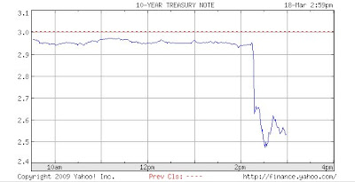 An amazing fall in yield of the 10 year Treasury note of almost 1/2%. Note that a falling yield is equivalent to a rising bond price.