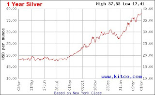 Here’s a 1 year chart from Kitco Silver.com so the reader can decide for themselves…