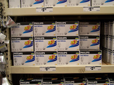 100w incandescents on sale at the Boulder Home Depot, New Years Day, 2012.